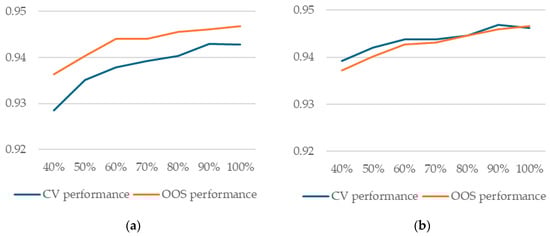 We also performed an F-test to investigate whether CV performance variance is different than OOS performance variance. Our results indicate that CV performance variance was lower than OOS performance variance by a small, but statistically significant, margin (F = 0.888, p < 0.001), a result opposite to that obtained with XGBoost models.