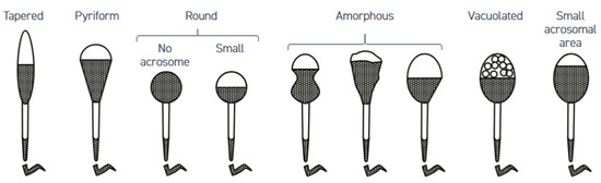 - Moretti, E.; Signorini, C.; Noto, D.; Corsaro, R.; Collodel, G. The relevance of sperm morphology in male infertility. Front. Reprod. Health 2022, 4, 945351. [Google Scholar] [CrossRef]
