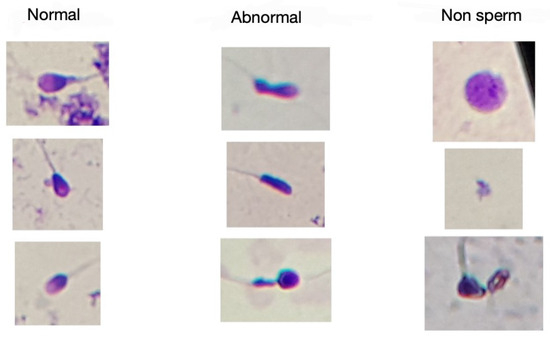 The SCIAN-MorphoSpermGS dataset [41] provides a gold-standard dataset for morphological sperm analysis (Figure 5). The dataset includes sperm head images classified into normal, tapered, and amorphous categories, serving as a benchmark for evaluating sperm classification techniques.