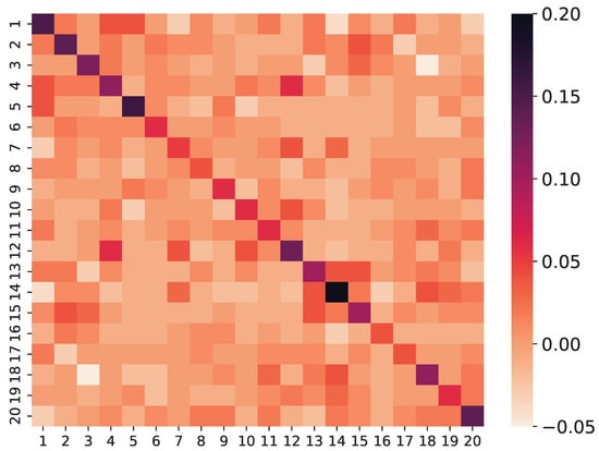 Heatmap of the covariance matrix for 20 stocks in the multi-asset option portfolio experiment.