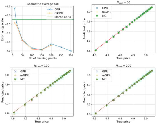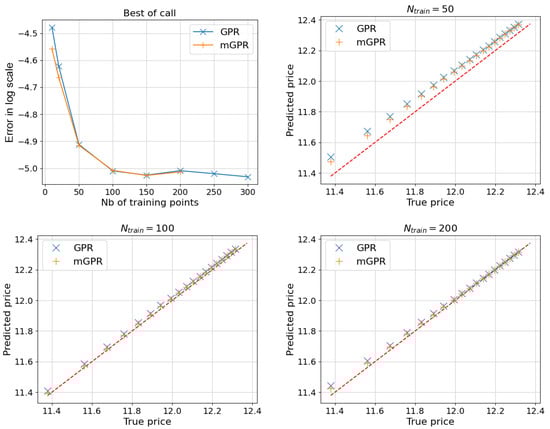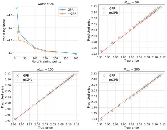 In the previous section, we described how to apply GPR to interpolate the surface of price function using a small number of training price points, thereby enhancing risk calculations in banks. However, the number of training points required to maintain high accuracy grows rapidly with the number of risk factors. This scalability issue becomes practically pronounced when pricing multi-asset options in Section 2.2. While direct application of GPR can still be efficient in moderate dimensions, various enhancement techniques may be employed to sustain accuracy. For instance, in the context of interest rate derivatives, ref. [] apply dimensionality reduction techniques, e.g., principal component analysis (PCA) or learning from diffusive risk factors [], to reduce the number of risk factors before interpolating the portfolio value by Chebyshev tensors. However, when products are highly nonlinear and depend on many diffusive risk factors, such as multi-asset derivatives, the effectiveness of such reduction techniques diminishes. This motivates us to explore other techniques such as multi-fidelity modeling.