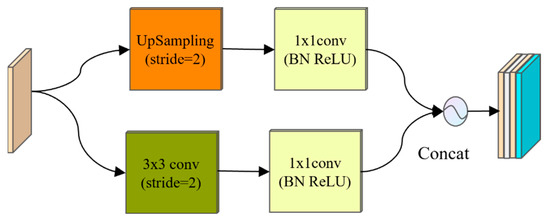 where and represent output characteristics and input characteristics, respectively; indicates the up-sampling operation; and indicates the transposed convolution.