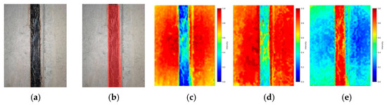 Thermal diagram of the different, improved modules. (a) Original drawing; (b) mask image; (c) none; (d) MD-U + SC-U; (e) MD-U + SC-U + FFM.