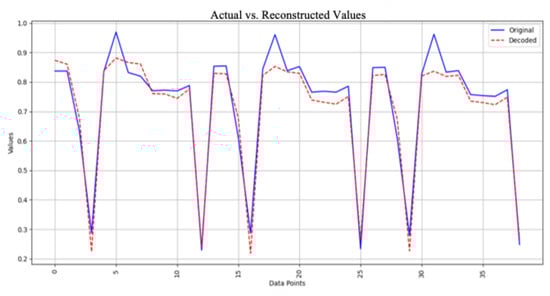 Projection: The original dataset is projected onto the space defined by the selected principal components, resulting in a reduced-dimensional representation of the data for further analysis. Figure 4 illustrates the original data compared with the decoded data for the case of n = 3 in PCA.