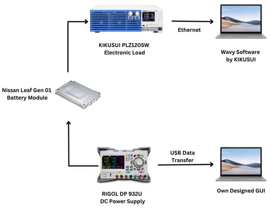 Figure 6 illustrates the complete charging and discharging setups used in the laboratory for the data collation process for Nissan Leaf Gen 01 battery modules.