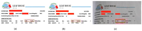 BMS readings for battery. (a) B1; (b) B2; (c) B3. Red box indicates State of Health at removal.
