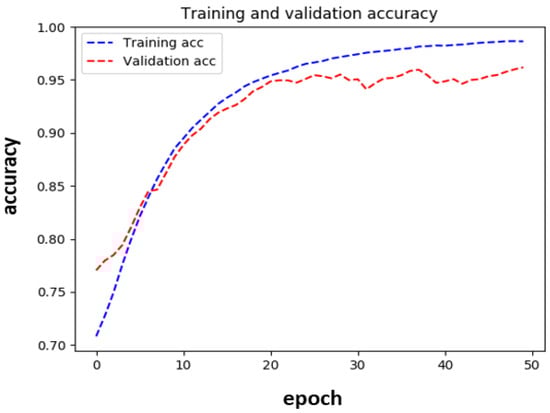Figure 7 shows the training and validation accuracy of the trained CNN model. The training accuracy smoothly improves and reaches 99% after 50 epochs. The validation accuracy also reaches over 95% and simulation is stopped. One interesting aspect is that both training and validation accuracy start at over 70% accuracy at epoch zero. This is one of the biggest advantages of transfer learning over training from scratch. Because we already started with a pre-trained model on Imagenet, it was able to achieve that accuracy at the beginning, saving a lot of simulation time and reducing the possibility of overfitting. Table 3 shows the confusion matrix of the model. From the confusion matrix, it is clear that Ragweed is the hardest one to classify. The CNN model misclassified Ragweed as Cocklebur/Pigweed in seven instances.