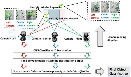 The experiments described in the previous sections demonstrate the considerable efficacy of the proposed classification algorithm under scenarios involving noise and vibration. However, a single-camera system is insufficient in handling challenges related to faulty sensors and partial occlusion. The presented sensor fusion algorithm offers a solution to address those concerns. Thus, this proposed system attempts to overcome some of the major issues observed in farmlands and enhance the reliability of herbicide spraying systems.