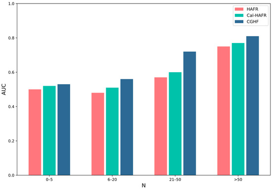 Comparison of CGHF in the different popularity group sizes based on AUC.