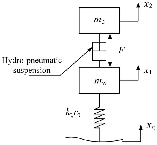 Figure 2 is a schematic diagram of the quarter-vehicle model with a semi-active hydro-pneumatic suspension.