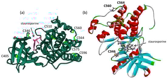- Jin, L.; Pluskey, S.; Petrella, E.C.; Cantin, S.M.; Gorga, J.C.; Rynkiewicz, M.J.; Pandey, P.; Strickler, J.E.; Babine, R.E.; Weaver, D.T.; et al. The three-dimensional structure of the ZAP-70 kinase domain in complex with staurosporine: Implications for the design of selective inhibitors. J. Biol. Chem. 2004, 279, 42818–42825. [Google Scholar] [CrossRef]