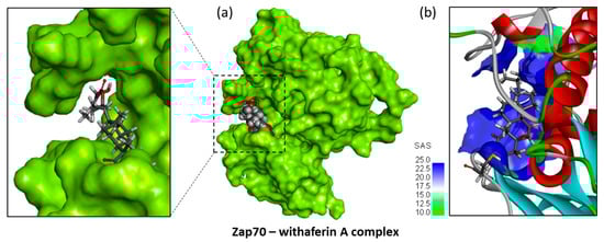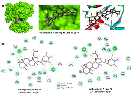 Chicago/Turabian StyleBedart, Corentin, Gérard Vergoten, and Christian Bailly. 2025. "Withangulatin A Identified as a Covalent Binder to Zap70 Kinase by Molecular Docking" Computation 13, no. 9: 207. https://doi.org/10.3390/computation13090207