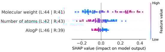 Feature selection was performed using a structured multi-step procedure designed to reduce redundancy and improve model interpretability. Descriptor importance was first assessed using the random forest algorithm. Their contributions to predictive performance were then evaluated with SHAP. Finally, subsets of descriptors were systematically tested, and those yielding the highest accuracy with the smallest number of features were retained for the final models. This approach resulted in compact descriptor sets.