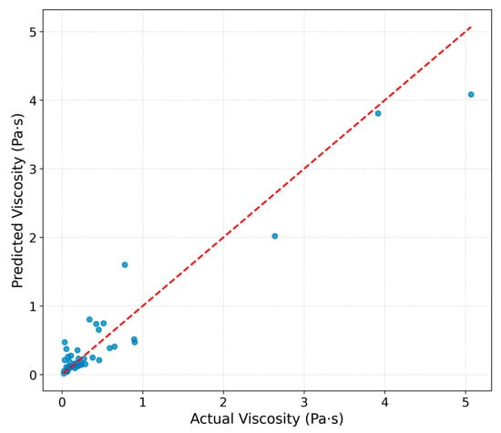The lower number of high-viscosity data likely contributes to the increased scatter and larger errors observed for these points. Such an imbalance is expected to a certain extent because reliable measurements of highly viscous ILs are experimentally more demanding and less frequently reported. Nevertheless, the model showed relatively significant accuracy in the low-viscosity region, which marks it as a promising first step. To improve generalization and reduce overfitting, future work should focus on rebalancing the dataset by incorporating a greater proportion of high-viscosity IL measurements, thereby ensuring that the model learns from a more uniform distribution of the target property.