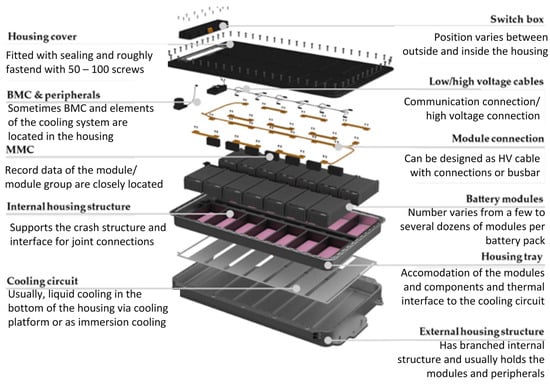 Electric vehicle and battery pack components (Reused from [10] with permission in accordance with Creative Common CC BY license, open access).