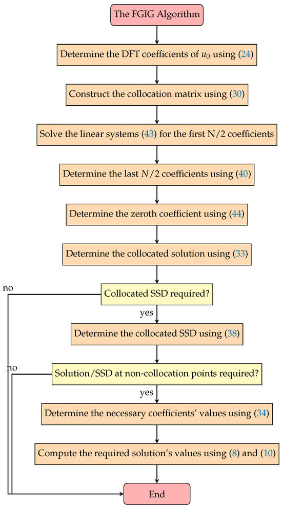 This algorithm provides a complete, efficient, and reproducible recipe for implementing the FGIG method, enabling the high-accuracy solution of periodic advection–diffusion problems without traditional time stepping.