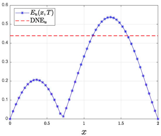 Before we continue our prescription of the proposed method, it is interesting to note here that unlike the standard Galerkin method, which yields a system of ordinary differential equations requiring initial conditions for time integration, the present approach results in the system of integral Equation (21) that can be solved without imposing any initial or boundary conditions (see Section 8 for numerical validation). The approximate solution, , can be directly computed at any point in space and time by adding the boundary function g to the time-dependent offset solution through Equation (8), after reconstructing the latter using Equations (10) and (12).