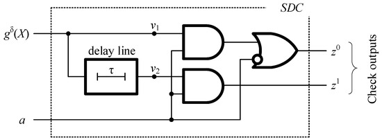 Next, the value of the function gδ(X) is monitored by the self-dual checker using the SDC device [20]. The self-duality checker also works when using a clock signal from the G generator. This structure is shown in Figure 3.