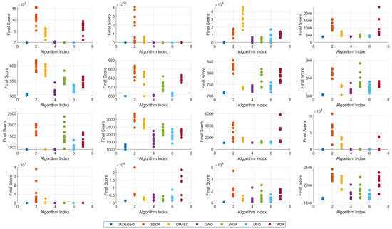 Upon evaluating , if it outperforms the original , the update is accepted. The global best and worst solutions (, ) are also updated accordingly. This process runs for iterations, ultimately returning the best-discovered solution as the outcome of the hybrid JADEGBO framework.