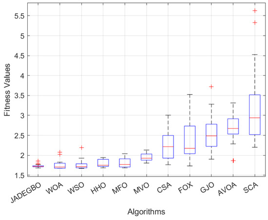 By integrating JADE’s adaptive exploration with GBO’s gradient-oriented refinement, the Hybrid JADEGBO algorithm can accelerate initial convergence and achieve more precise final solutions. JADE rapidly explores the search space and guides the population toward promising regions, which are then intensively exploited by GBO to further improve solution quality and avoid local optima through local escaping operators.