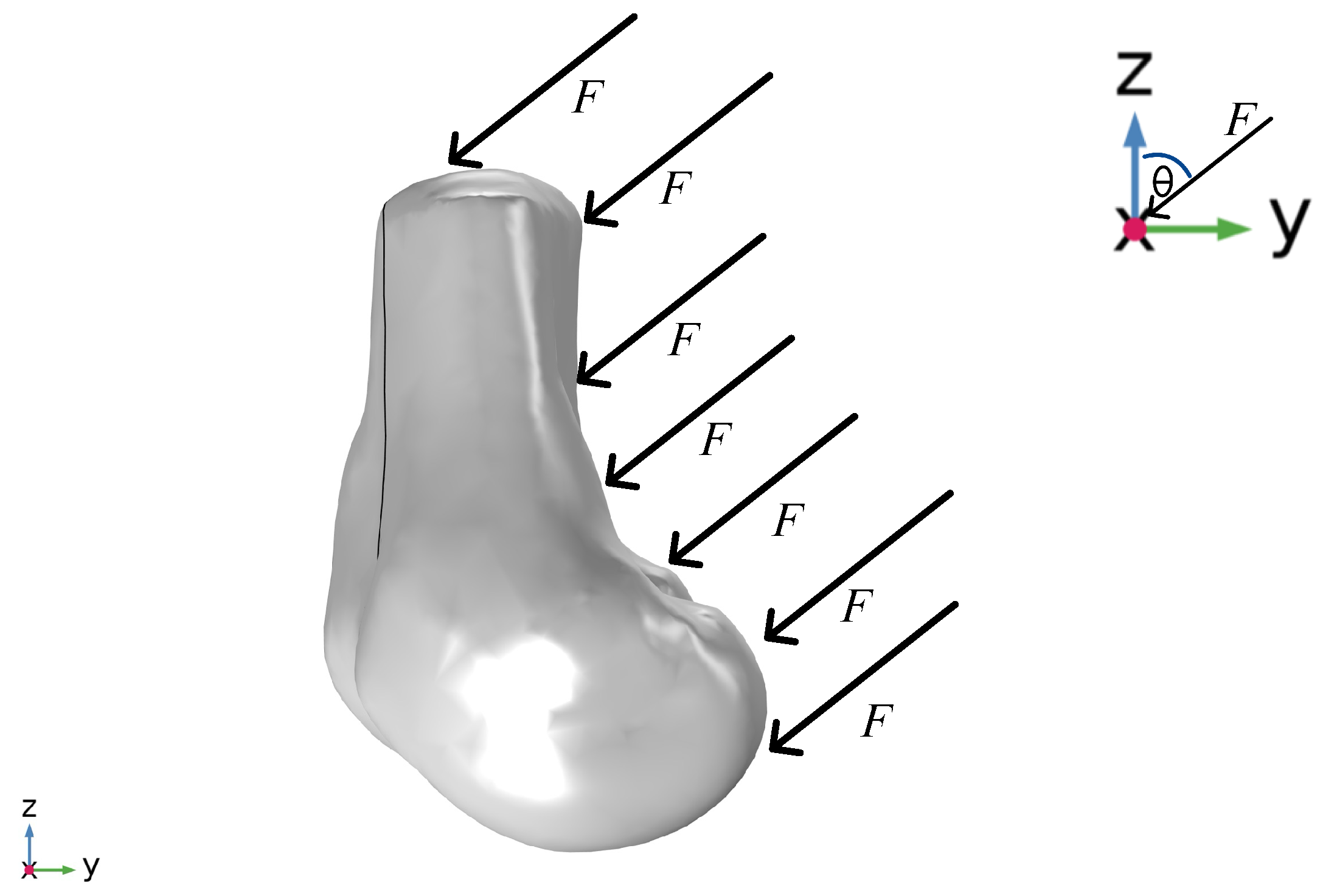 The force vectors () applied to the articular surface are as follows: