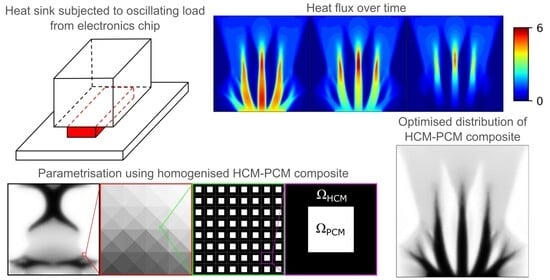 - Christensen, M.B.M.; Alexandersen, J. Topology optimisation of heat sinks embedded with phase-change material for minimising temperature oscillations. HAL, 2023; p. hal-04185641. Available online: https://hal.science/hal-04185641v1/ (accessed on 13 December 2025).