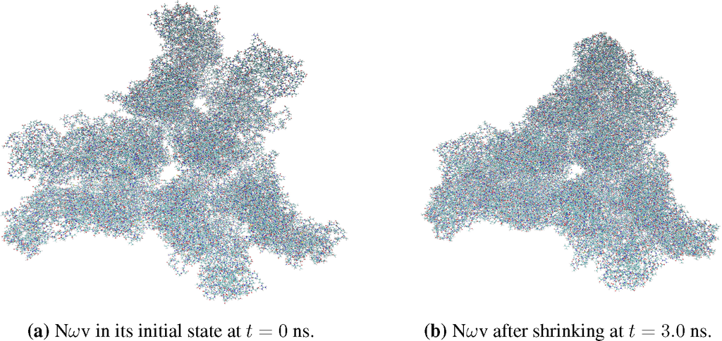 is a vector of momenta for the i−th atom. With Φ(t + Δ) computed via Equation (26), the two-phase Δ update is complete, and this cycle is repeated for an arbitrary, but finite, number of discrete time steps. For additional details regarding the necessary energy minimization and equilibration needed for every CG step, we refer the reader to earlier work of the authors [21,29,30]. With this algorithm in place, the final step is to implement a number of trial simulations for relevant demonstration systems.