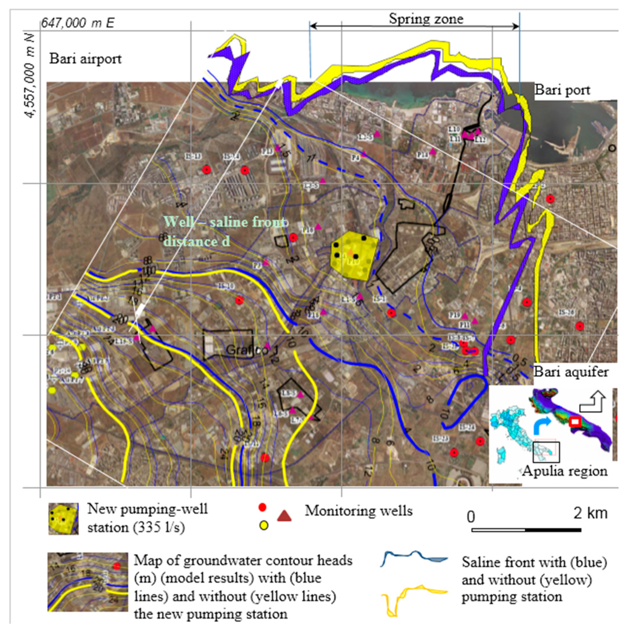 - Masciopinto, C. Simulation of coastal groundwater remediation: The Case of Nardò Fractured Aquifer in Southern Italy. Environ. Model. Softw. 2006, 21, 85–97. [Google Scholar] [CrossRef]