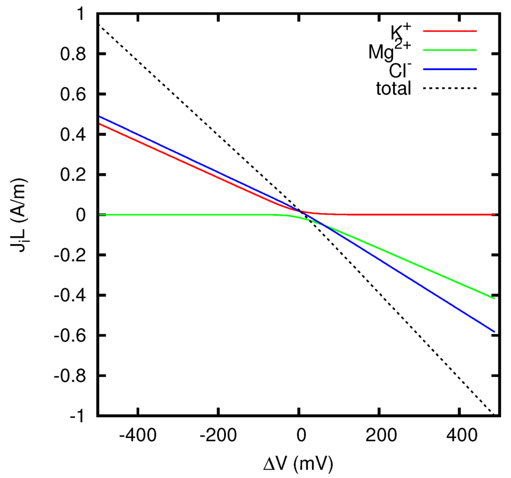 - Goldman, D.E. Potential, impedance, and rectification in membranes. J. Gen. Physiol. 1943, 27, 37–60. [Google Scholar] [CrossRef] [PubMed]