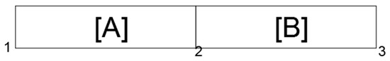 For the assembly of two cells, consider the dynamic stiffness matrices A and B for Cell 1 and Cell 2, respectively, as shown in Figure 1. The dynamic stiffness matrix is now denoted with , which relates the DOF between the two sides (left and right). The dynamic stiffness matrix of the structure is calculated using: