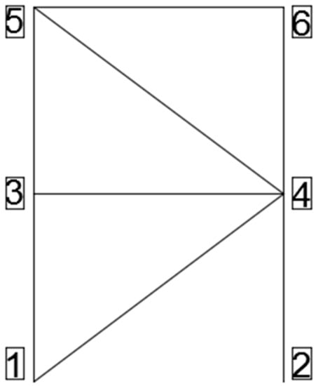 The truss application is applied under a second type of loading for the investigation of the frequency response function under a range of frequencies. The crane structure will be studied under hysteretic damping solely, represented by the previously shown dynamic stiffness matrix (14). The first two nodes are subjected to seismic load, which is modeled as a harmonic displacement of , where on the base of the structure, as shown in Figure 6.