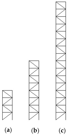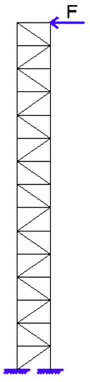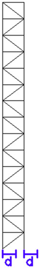 Referenced to real-life applications, freestanding tower cranes with fixed foundations and no undercarriage supports are modeled as cranes with the repeated cell mentioned before, and they are only repeated 16 times with a total length of , including the foundation height. All dimensions are assumed relative to actual values.