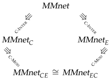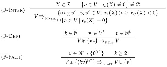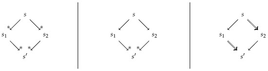 - . Suppose that the intermediate species was eliminated thereby. Recall that . We can assume without loss of generality that for all . Let P, C, , and be as introduced in the Diamond Lemma 3, where , homomorphism h the identity on , and for all . The lemma then yields:Since it follows that . Furthermore, since otherwise so that (F-Inter) could not be applied. Since , this tuple is equal to . With we get:This multiset is an invariant, since . It follows that:This implies . Since and since is closed by factorization with nonzero factors, it follows that as required.