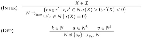 - . By rule (F-Dep) there exist , and such that . If all are distinct from then trivially . Otherwise, we can assume without loss of generality that with v and as in the rule. Suppose that these have the forms and . Since , it follows that:This yields . Since this is is equivalent to as required.