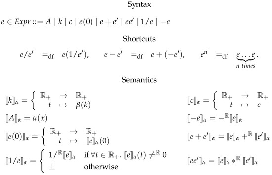 - Madelaine, G.; Lhoussaine, C.; Niehren, J. Attractor Equivalence: An Observational Semantics for Reaction Networks. In Formal Methods in Macro-Biology; Springer: New York, NY, USA, 2014. [Google Scholar]
