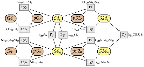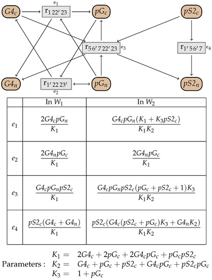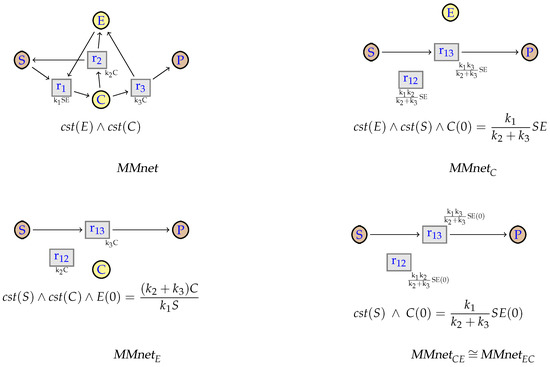 - Madelaine, G.; Lhoussaine, C.; Niehren, J.; Tonello, E. Structural simplification of chemical reaction networks in partial steady states. Biosystems 2016, 149, 34–49. [Google Scholar] [CrossRef] [PubMed]