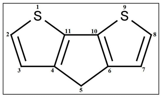 Another property is a ring descriptor that defines the distance/detour ring index of order 11. This descriptor can be best defined with the fragment illustrated in Figure 5. Compounds like 1, 13, 16, etc. have this fragment, along with a higher value for other descriptors showing very high PCE (see Table 1). On the contrary, compounds like 6, 9, and 18 lack this fragment, resulting in lower PCE values (see Table 1). Again, compound 17 has the ring fragment but due to the lowest value for the other two descriptors it generates the lowest PCE value among the studied dyes (see Table 1). This fragment will help to make a composite fused structure dye system where favorable molecular orbital energy enables rapid electron injection into the semiconductor and allows efficient regeneration of the oxidized dye. As the effectiveness of the DSSCs is influenced by the amount of solar energy absorbed by the dye and the kinetics of the charge transfer across the semiconductor network, the abovementioned fragment affects performance immensely to gain a higher PCE value for DSSCs, along with the abovementioned descriptors and .