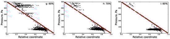 Pressure gradient for (a–i) 0%–80% edges removed (gradient boundary conditions). Boundary points are highlighted in red.