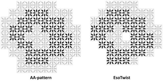The EsoTwist algorithm in 2D. (left) Odd time step; (right) Even time step.