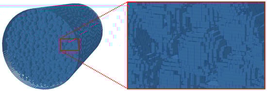 The discretization of the random packing of spheres with a lattice spacing of 40 m. Picture reproduced from [].