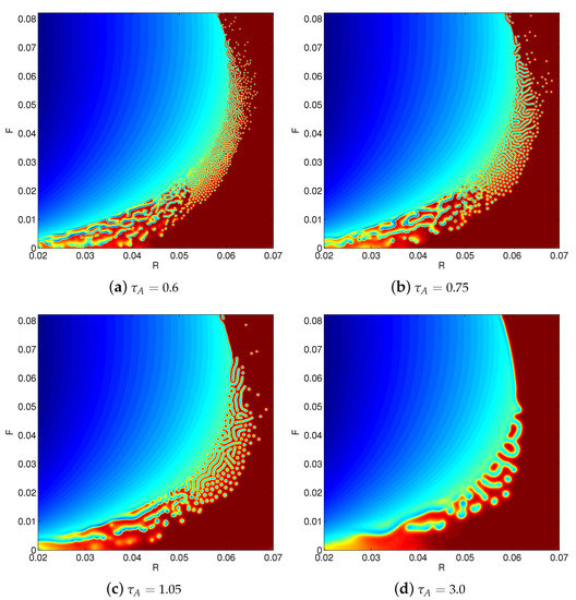 - Ayodele, S.G.; Varnik, F.; Raabe, D. Lattice Boltzmann study of pattern formation in reaction-diffusion systems. Phys. Rev. E 2011, 83, 016702. [Google Scholar] [CrossRef] [PubMed]