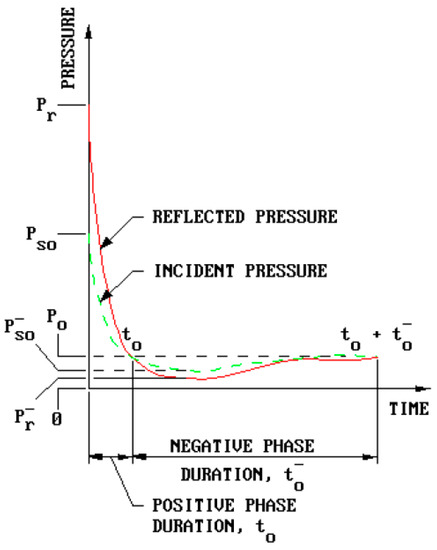 Figure 2, a pressure-time history curve of a blast load may be represented by several parameters. The following parameters were used to estimate the blast load: