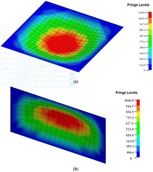 Figure 6). After the analysis, the residual displacements were measured at a point every 1 m from the center of the model for free-air burst simulations, and from a height of 0.5 m above the bottom of the plate for surface burst simulations.