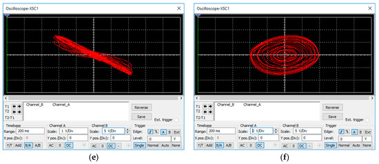 The designed circuit of Figure 6 has been implemented by using the well-known Multisim program. In this way, PSpice results of the phase portraits in various planes are reported in Figure 7. It is easy to see the good agreement between system (8)’s numerical results (Figure 1) and the circuit’s simulation results (Figure 7).
