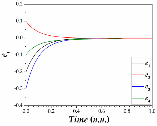Therefore, from Equation (27), it follows that , while from system (16), it can be deduced that . Thus, we can conclude that for all initial conditions e(t) → 0 exponentially as t → ∞, by using the Barbalat’s lemma [84].