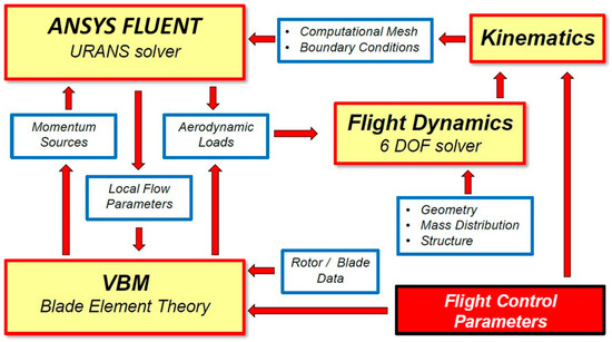 General scheme of the developed methodology of rotorcraft-flight simulation.