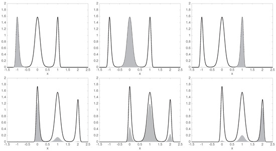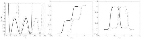 where the potential W now depends explicitly on time t. In this case, a lag time is not sufficient to parametrize the statistical evolution of the system, because we need to know when we start the evolution. Thus, transition density functions need two time parameters, e.g., denotes the distribution of conditional to . Similarly, the transfer operators are parametrized by two times as well, e.g., propagates probability densities from initial time s to final time t (alternatively, from initial time s for lag time ). To simplify notation, we will settle for some initial and final times, and drop these two time parameters, as they stay fixed.