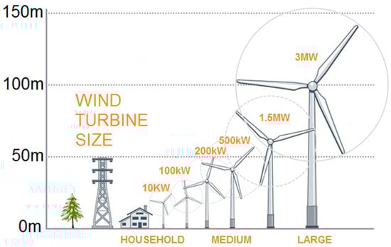 It is known that the environmental impacts produced in the operational process of wind turbines are lower compared to the ones produced by fossil fuels-based systems [], however, the overall contribution of smaller wind turbines may be limited. The environmental effects of small-micro turbines and their capability to contribute to climate change targets in the UK was examined by []. Installation of small wind turbines in the domestic sector would only save around 0.6–1% of greenhouse emissions of 2009. So, its potential to contribute to the climate change targets of the UK is limited.