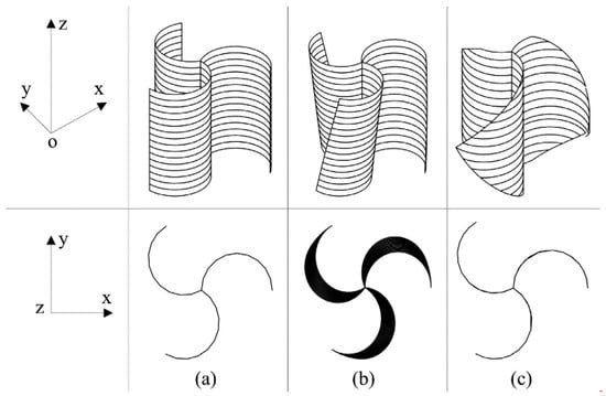 Model of the rotors with (a) semi-cylindrical (b) helically-twisted and (c) semi-circular blades [].