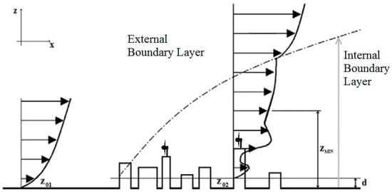 There has been renewed interest by architects, built environment engineers, developers and governments regarding the installation of wind turbines into urban or built environments due to their capability to provide delocalised power which could provide a solution to the increasing urbanisation and renewable energy demand and interest in low energy and sustainable buildings [,]. Wind turbines positioned at the rooftop of a tall building to extract wind energy, in theory, could take advantage of a higher area of the wind velocity profile (see Figure 11) which is not significantly affected by the surface roughness [,]. Prominent examples include, the World Trade Centre in Bahrain, Strata Tower in London, and Pearl River Tower in Guangzhou which have building-integrated wind turbines [].